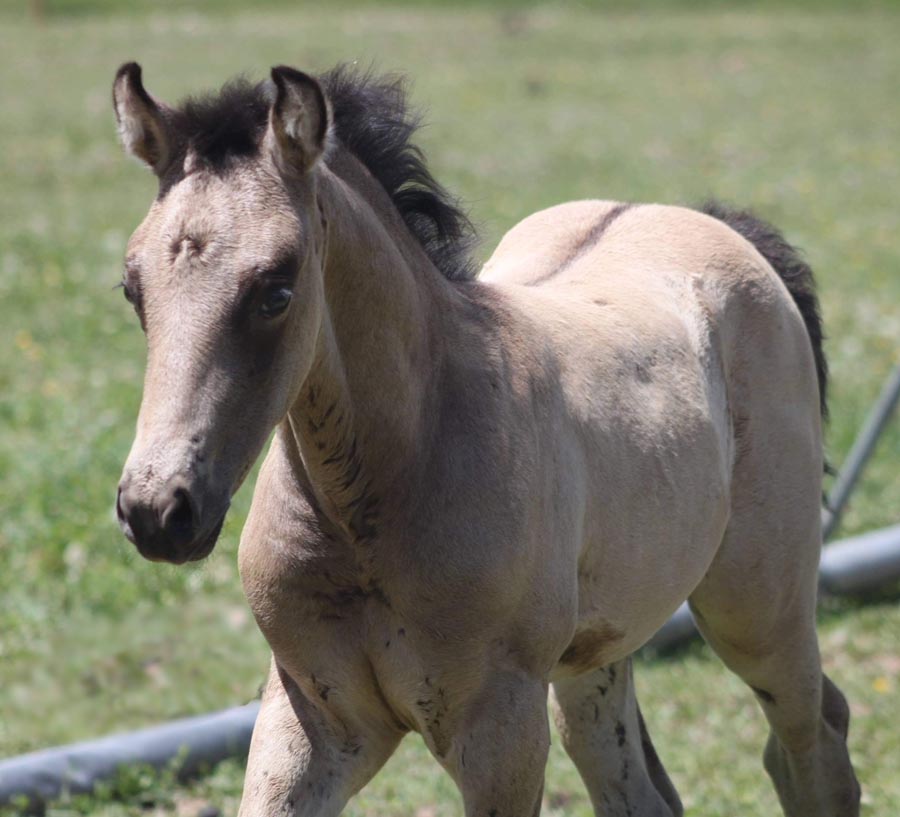 grulla colt "Myles" EeaaDD owned by Harris and Joanie Grunden